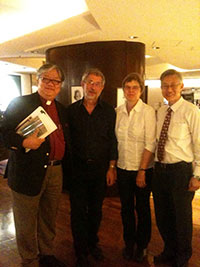 Receiving Prof. Dr. Klaus Koschorke (Retired Professor and Chairman of the Department of Church History at the University of Munich) in Hong Kong after meeting him in Shanghai 与德国慕尼黑大学前任教会历史系主任Klaus Koschorke教授(左二)在上海见面后,他与妻子到访香港时特来探访,右一为前香港中文大学宗教系系主任吴梓明教授 |