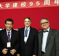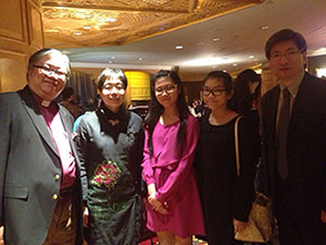 At the ninety-fifth anniversary of the establishment of Yenching University with Prof. Tu Wei-ming, Director of Institute for Advanced Humanistic Studies, Peking University 与北京大学高等人文研究院院长杜维明教授(左一)摄于燕京大学建校95周年庆祝开幕式 |