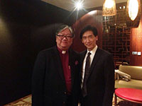Prof. Dennis Ng is having a pleasant chat on the development of Chinese sacred music with Prof. Ma Ge-shun in his home. Prof. Ma is a renowned scholar in sacred music in China who has been awarded the national Golden Bell Award – Lifetime Medal of Honour. 伍德荣教授与著名中国圣乐学者马革顺教授于马教授家中畅谈中国圣乐发展,马教授获国家授予中国音乐最高奖项——金钟奖的终身荣誉奖。 |