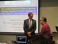 Vote of thanks by Rev. Dr. Gao Ying, Vice-President of China Christian Council and President of Yanjing Theological Seminary, after the keynote at Yanjing Theological Seminary 主领燕京神学院学术讲座后获该院院长高英博士致谢,高院长亦为中国基督教协会副会长 |