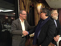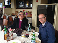 A photo with Prof. Thomas Harvey (right), Academic Dean of the Oxford Centre for Mission Studies, the University of Oxford, at the banquet for participating scholars hosted by the University of Manchester 与英国牛津大学宣教研究中心(Oxford Centre for Mission Studies,. OCMS)教务长Prof. Thomas Harvey(右一)摄于英国曼彻斯特大学举行之晚宴 |