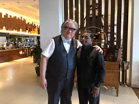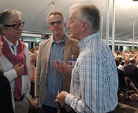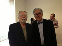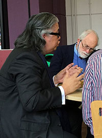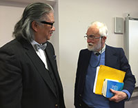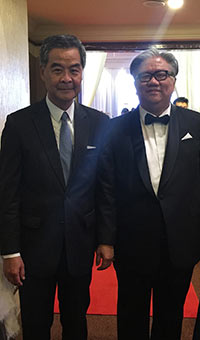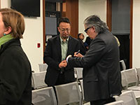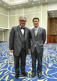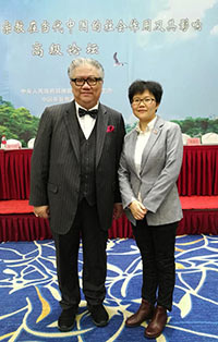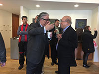 Greeting Prof. Mak Su-yin (Associate Professor in the Music Department, the Chinese University of Hong Kong) and Mr. Christopher Pak (Head of Academic Studies in Music, the Hong Kong Academy for Performing Arts) 香港中文大学音乐系副教授麦淑贤、香港演艺学院音乐学科系主任白德云 |