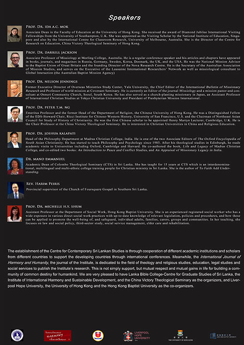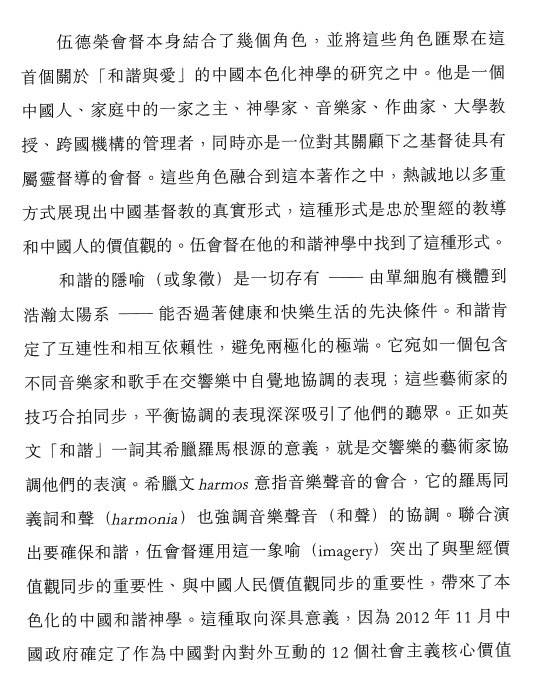 Inaugural Speech by Bishop Prof. Dennis T.W. Ng〔伍德荣会督(教授)〕 "The Contribution of Theology of Harmony in China to World Harmony" |
