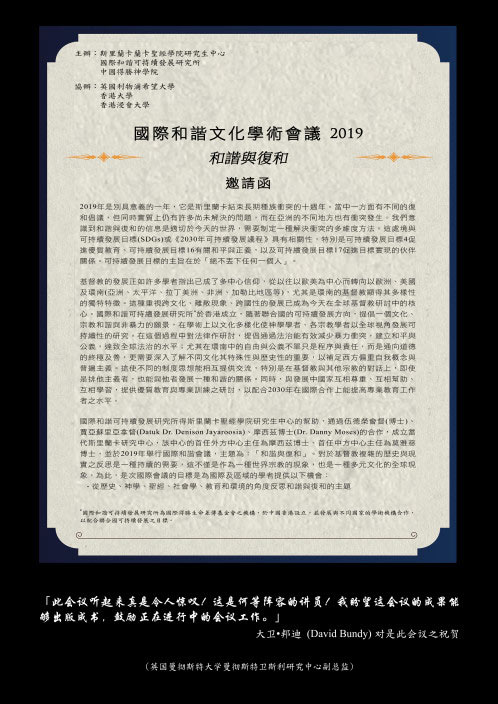 Keynote speech on the topic "Understanding Harmony & Peace from a Faith & Cultural Dimensions" 主题演讲之题目:「从信仰及文化角度理解和谐与和平」 |
