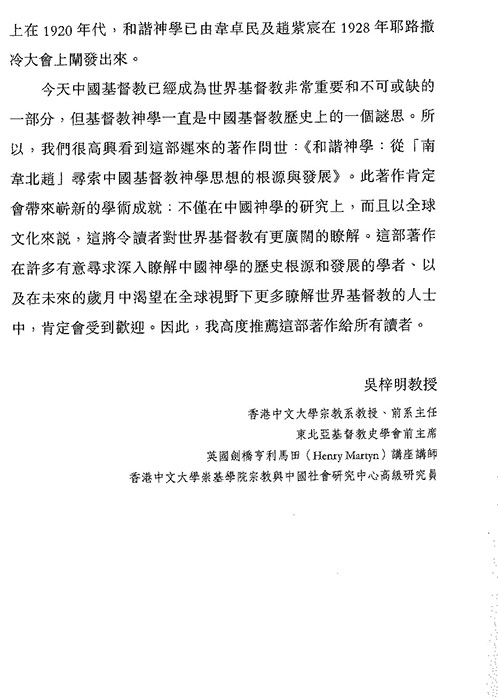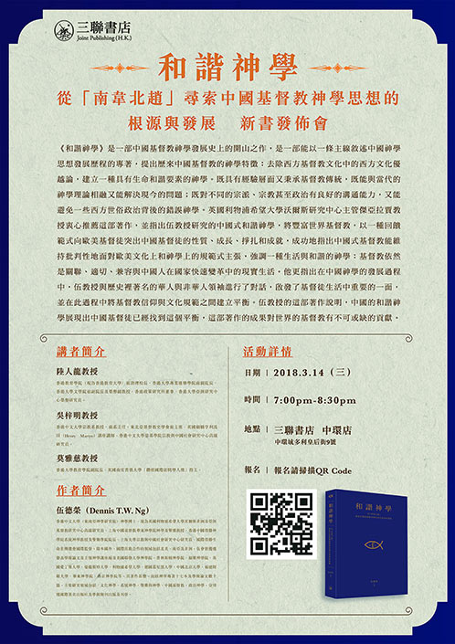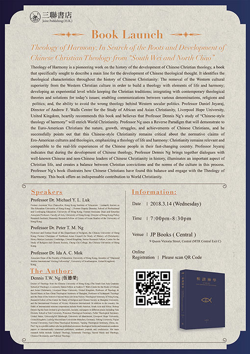 Professor Michael Y.L. Luk’s remark on Professor Dennis Ng’s Harmony Theology. 陸人龙教授評述伍德榮教授之《和谐神学》Professor Michael Y.L. Luk is the former Assistant Principal of the Hong Kong Institute of Education (now known as the Education University of Hong Kong), the former Associate Dean of the School of Professional and Continuing Education of the University of Hong Kong, and one time served as Sub-Dean and Honorary Associate Professor the Faculty of Arts at the Univeristy of Hong Kong. Currently he is a member of the Board of Directors of Hong Kong Policy Research Institute and Honorary Research Fellow of the Centre of Asian Studies at the University of Hong Kong. Below shows Professor Luk’s comments from the book launch of “Harmony Theology”, held on March 14, 2018. 陆人龙教授为香港教育学院(现称香港教育大学)前助理校长、香港大学专业进修学院前副院长、香港大学文学院前副院长及荣誉副教授、香港政策研究所董事、香港大学亚洲研究中心荣誉研究员,以下之评述来自于2018年3月14日举行之《和谐神学》新书发布会。 |