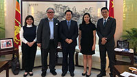 Discussing future collaboration and development with the Head of UN Institute for Social Development (second right). 联合国社会发展研究所所长(右一)讨论日后之合作及发展 |