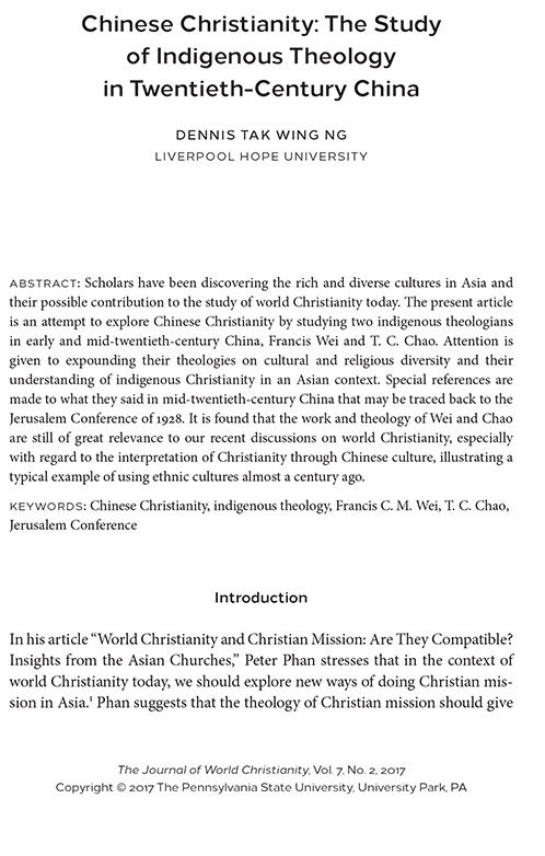 Inaugural Speech by Bishop Prof. Dennis T.W. Ng〔伍德荣会督(教授)〕 "The Contribution of Theology of Harmony in China to World Harmony" |