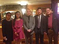 Greeting Prof. Mak Su-yin (Associate Professor in the Music Department, the Chinese University of Hong Kong) and Mr. Christopher Pak (Head of Academic Studies in Music, the Hong Kong Academy for Performing Arts) 香港中文大学音乐系副教授麦淑贤、香港演艺学院音乐学科系主任白德云 |